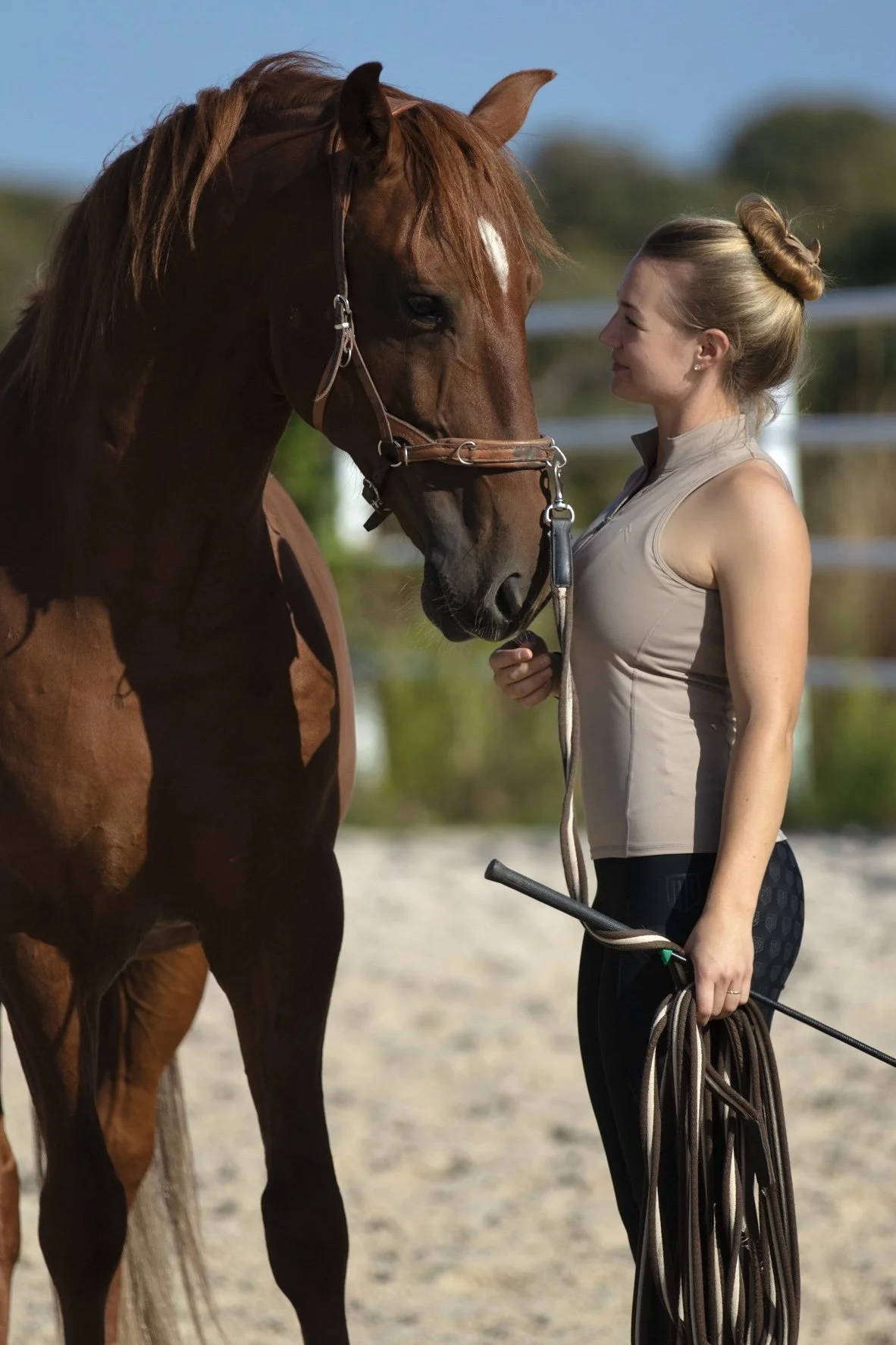 Der nächste prägende Schritt führte mich auf das Lusitanozuchtgestüt La Perla in Spanien, geführt von Leonie Bühlmann. Dort fand ich auch Limonero, meinen Hengst, meinen größten Lehrmeister und besten Freund. Auf La Perla, zuerst 2019 als Praktikantin und später von 2021 bis 2023 als Bereiterin, waren es erneut vor allem die Pferde, die mich formten. Der Schwerpunkt lag auf der Ausbildung von Jungpferden, die von mir Klarheit, Geduld und ein tiefes Verständnis für individuelle Entwicklung verlangten. Gleichzeitig schulten mich die hoch ausgebildeten Zuchthengste in präziser Hilfengebung und fortgeschrittenen Lektionen, wodurch sich meine Wahrnehmung und mein Gefühl für feine Ausbildung weiter schärften. Das umfassende Wissen von Leonie Bühlmann und Stephanie Demmelbauer beeinflusste meinen Weg hin zu korrekter, biomechanisch sinnvoller und pferdegerechter Ausbildung nachhaltig.