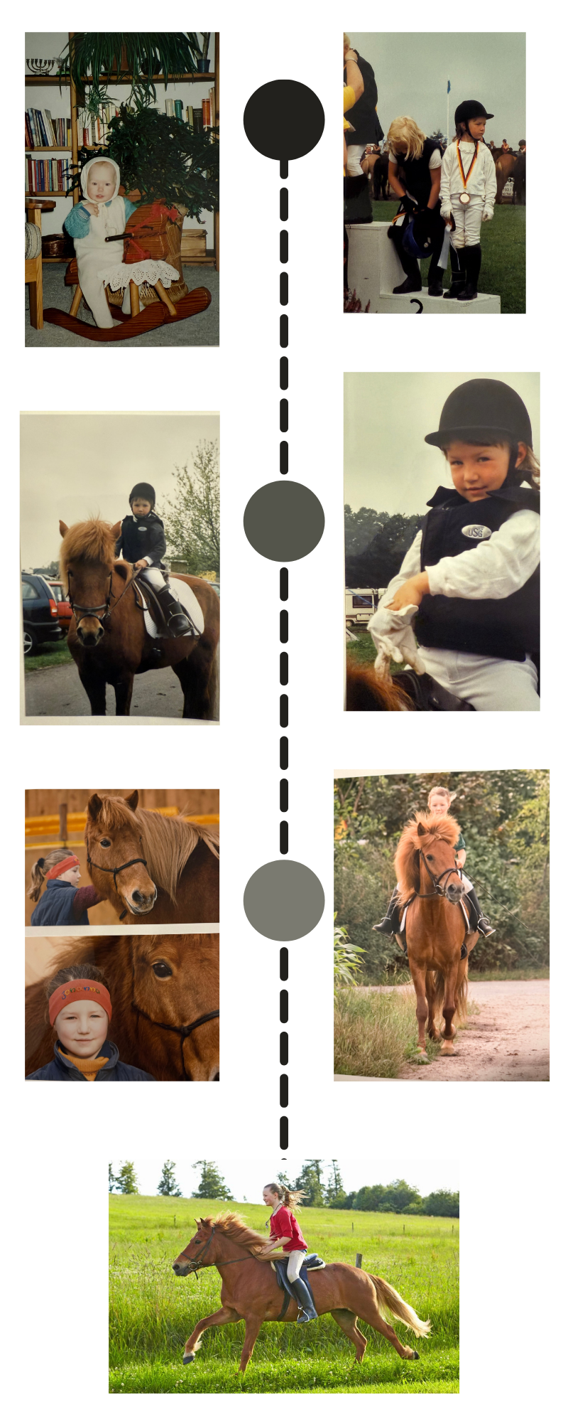 Diese Haltung begleitet mich seit meiner Kindheit, denn ich hatte das Glück, mit Pferden aufzuwachsen. Meine Mutter – Ann-Theresia Michahelles, Reittherapeutin, Coach und Heilpädagogin – prägte mich früh. Von ihr lernte ich, dass jedes Pferd eine Persönlichkeit hat und steten Anspruch auf Empathie und Hingabe. Ich lernte, unter anderem durch das Centered Riding, wie wichtig Körperbewusstsein ist, wie viel Freude Freiheit bedeuten kann – etwa mit meiner Islandstute Rán am Halsring über die Wiesen zu fetzen – und wie sehr wir verantwortlich sind, Pferde physisch und psychisch gesund zu erhalten.