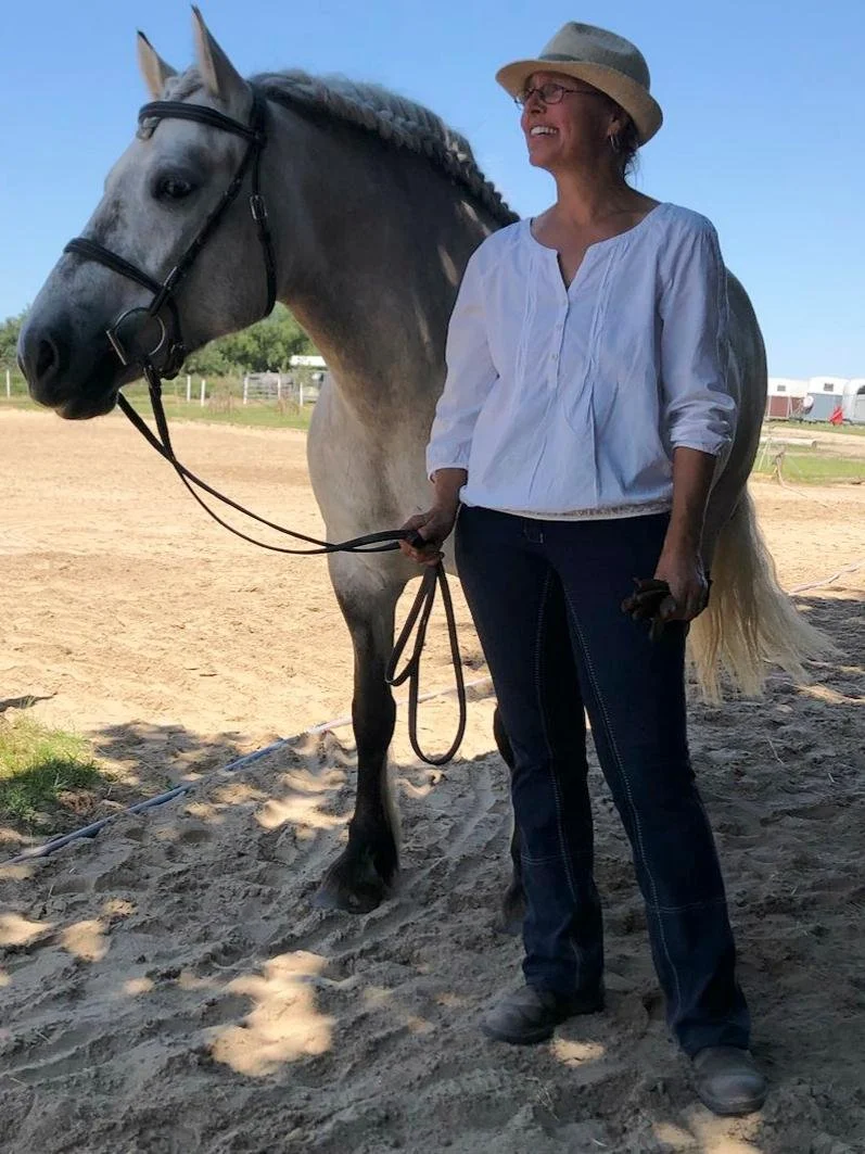 Für mich war es ein riesen grosses Glück, dass sich Johanna meiner Pferde annahm. Darüber hinaus habe ich regelmässig Unterricht bei ihr auf ihrem Lusitanohengst Limonero, den sie selbst wunderbar ausgebildet hat. Der Unterricht auf ihrem Pferd zeigt mir: