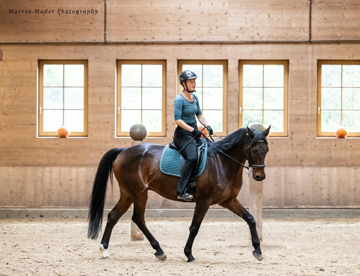 Dank Johanna lerne ich, mein Pferd bewusst und fein zu formen. Das Reiten fühlt sich dadurch immer mehr wie ein Paartanz an. Dass ich mein Becken einmal so differenziert einsetzen kann, hätte ich nicht gedacht – vor allem die Erkenntnis, beide Beckenhälften unabhängig voneinander in unterschiedliche Richtungen bewegen zu können . ;)